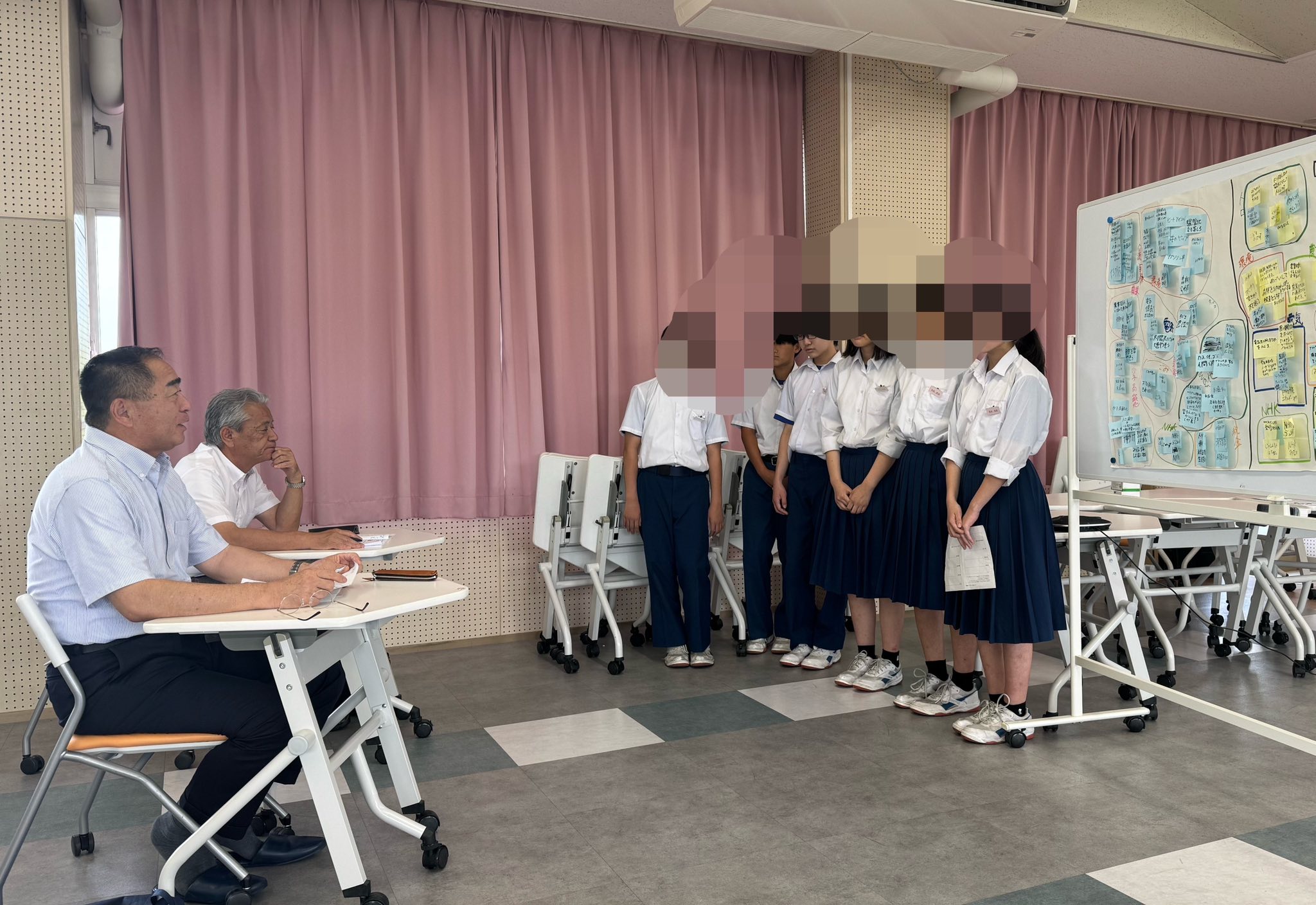 例えば、定年を80歳にする、母親同士コミュニケーションが取れる場所を整備する、子供1人あたり150万円の一時金を出す、農家あたりの耕地面積を倍増させる、ボランティアでポイントが貯まるアプリを作る、外国から小中学校に留学生を招く、節電の知識を市のホームページに掲載する、空き家をリフォームして移住者に提供する、なしの食べ比べや「流しナシ」イベントをやる、ソーラーパネルのお金を市が出す、ふるさと納税の返礼品として梨の食べ比べセットをつける、民泊村を作るなどなど。体育館へのクーラー導入と、公園でのバスケットボードの導入については、すぐに導入するということでした。大学生を中心としたファシリテーターも13人連れて行くことができました。このような取り組みが、地域の政策に関心のある公共的な市民の育成につながれば幸いです。